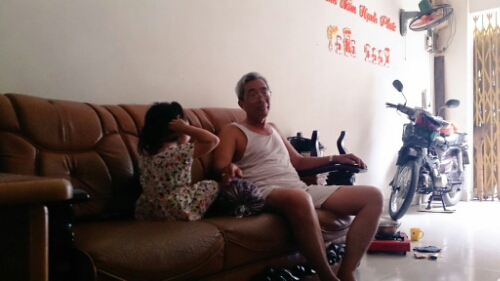 cacdung Hôm nay ông ngoại lên thăm bà cố nên Chuyên qua quận 8 chơi, vui lắm, cười hắc hắc với ông ngoại suốt