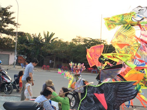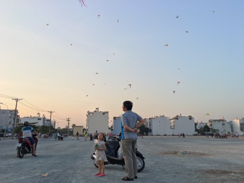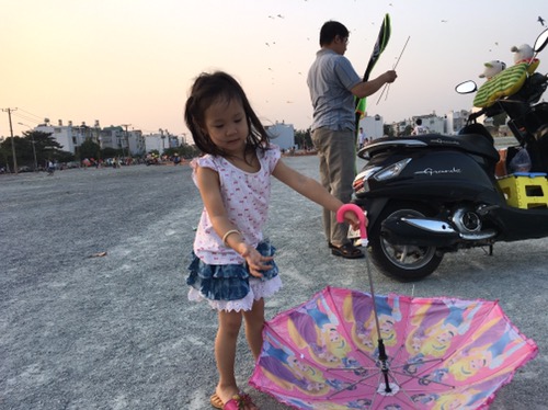 Hôm qua ba chở đi loanh quanh chơi, phát hiện gần chỗ mình có một “ổ” diều, khỏi phải nói cả nhà phấn khích thế nào :)) Theo sự chỉ đạo của mẹ (trùm định hướng của nhà mình) thì chúng ta đã đáp đúng chỗ